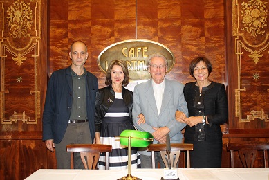Foto (v.l.n.r.): Paul Matic (Schauspieler), Alena Heribanová (Direktorin des Kulturinstituts der Slowakei, Wien), Anton Hykisch (Schriftsteller) und Dr. Rumjana Koneva (Direktorin des Bulgarischen Kulturinstituts, Wien) im Café Landtmann. Credit: ConnectingCulture.at