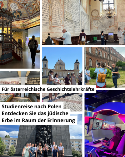 Polen und erweitern Sie Ihre didaktischen Kompetenzen in der Vermittlung schwieriger Themen wie dem Holocaust und dem kollektiven Gedächtnis. Inspirierender Austausch: Nutzen Sie die Gelegenheit, sich mit Kolleginnen und Kollegen auszutauschen, internationale Kontakte zu